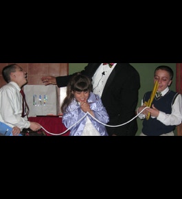 Mi show es súper divertido, de alta energía, un paseo cómico. Una actuación llena de acción, interactiva e ininterrumpida en la que los niños desempeñan los papeles principales, y el niño de honor es la estrella.